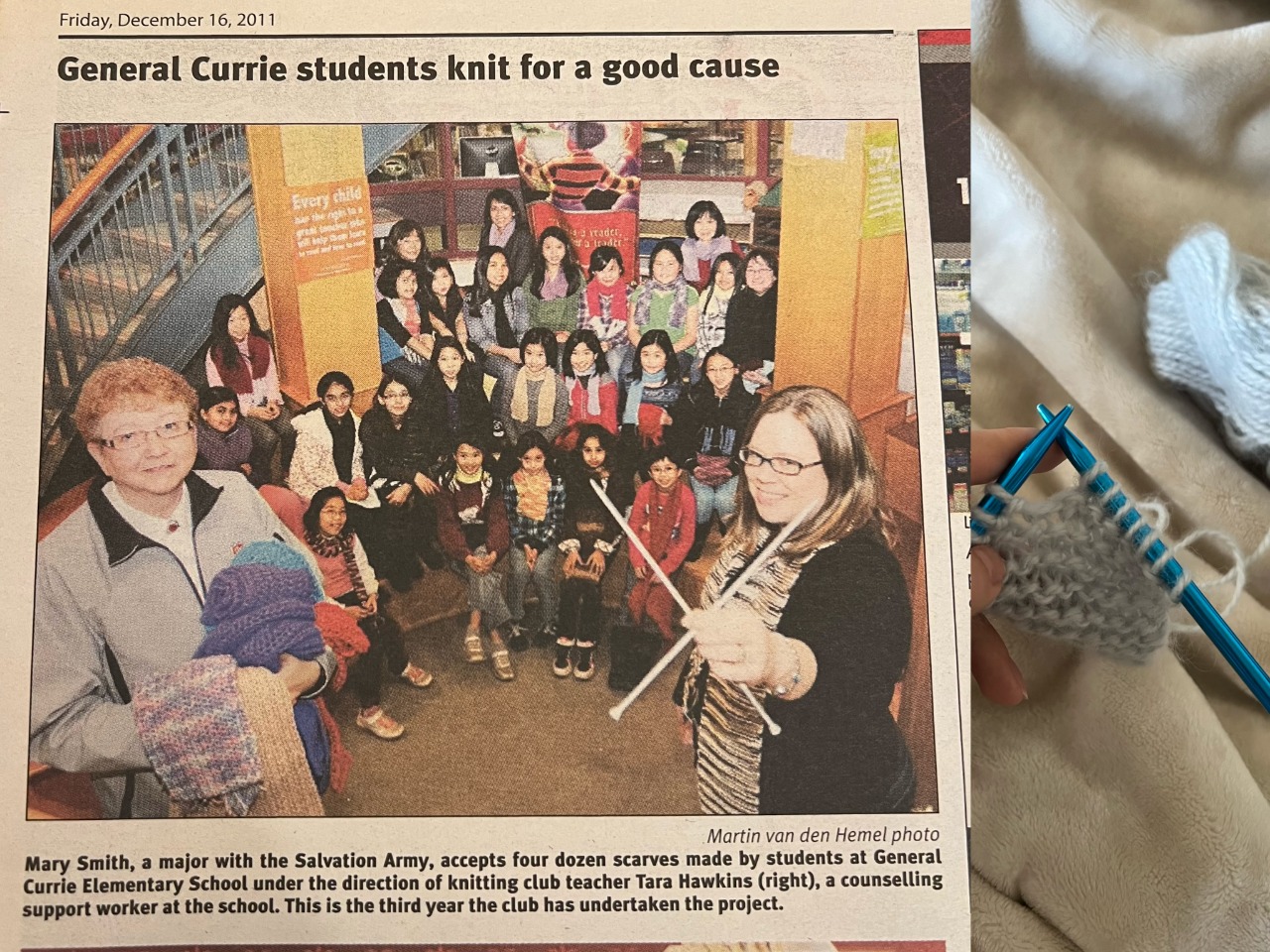 小學時我在課外活動參加了編織興趣小組,我學會了如何編織。 我和其他同學為 Salvation Army 編織了圍巾,也為 BC Children's Hospital 編織了毛毯,雖然這些看似很少的事情但小時候的我就覺得很有意義,希望以後能學到更多複雜的編織花樣,把更多的作品送給需要的人!