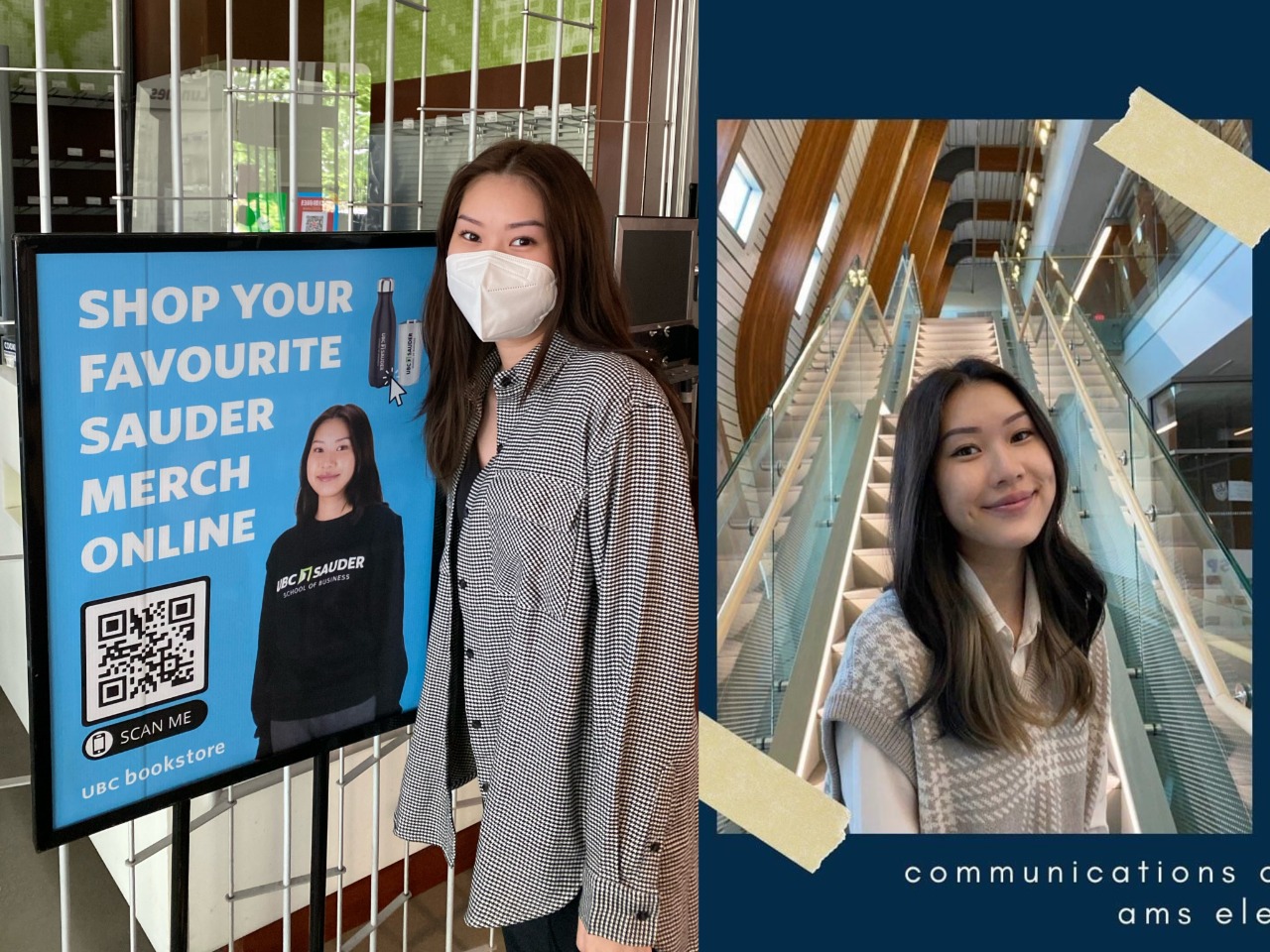 在 UBC 學習的四年期間,我在學校裡工作了兩年。我曾擔任選舉小組的 Communications Officer。我還為書店當過模特兒,可以在校園海報或線上購物時找到我!這兩項不同的工作中,很高興有機會學習更多的技能和知識,使我獲得更多人生經驗。